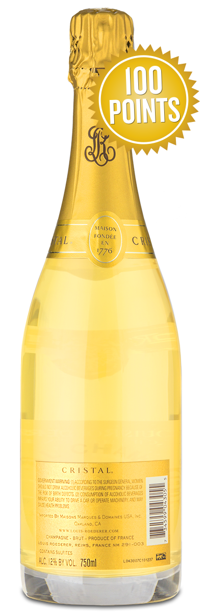 "This is so fresh, tense and mineral with extremely exuberant chardonnay notes on the nose of white peach, lemon, and yellow grapefruit, and hints of almost brambly sous bois aromas. The yeast characters are also super fresh, and there are subtle woody notes, with a hint of vanilla bean and light spices. The palate is super long, and very pure, powerful, and focused. It drives deep and taut. Pinot noir is a strong core and the chardonnay sits at the edge offering lemon and white nectarine sorbet flavors. Staggeringly concentrated, yet the balance makes it seem airy and light. Acidity is perfectly positioned, and the power is intense and long. This is an ultra-precise Cristal, finishing with a mere suggestion of savoriness and warmth to come. Impressive on release, this will be at its best drinking from 2025." - James Suckling | 100 Points