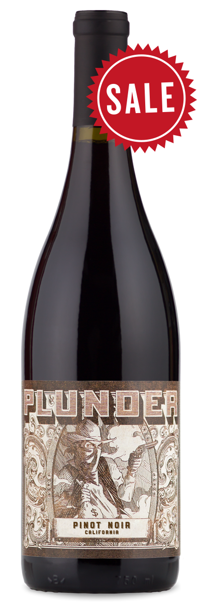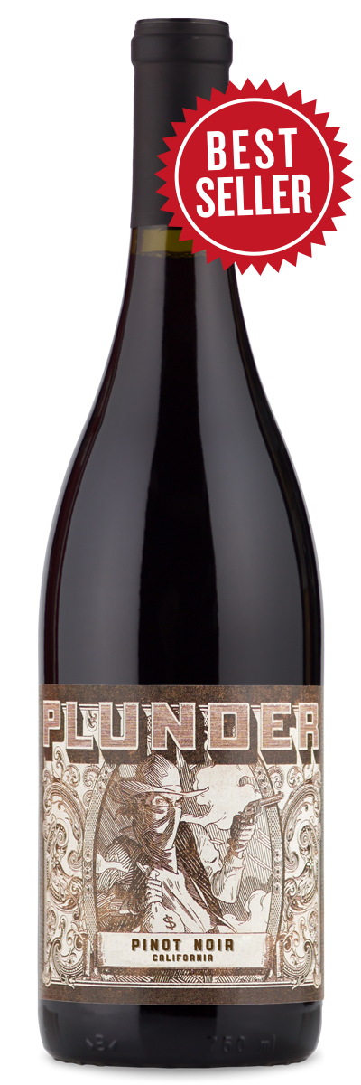 The California Plunder Pinot Noir wine will burst through your doors, guns ablaze, to overwhelm your senses with a bombastic display of ripe fruit taken from some of California's finest vineyards. Once you get past its tough exterior, Plunder reveals its gentle nature; a bruiser with a soft center.