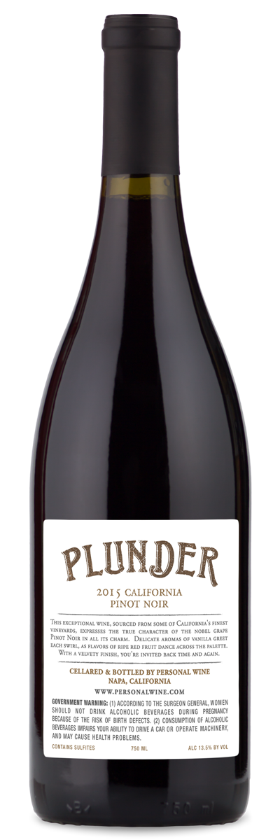 With your added personal touch, this bottle of 2017 California Plunder Pinot Noir wine will be an absolutely unforgettable gift.