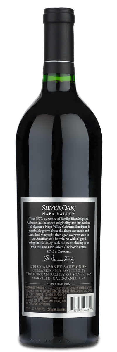 The Silver Oak Cabernet Sauvignon finishes with notions of savory umami and fruit with a medium tannic grip. The wine has a dark garnet color and is bursting with fruit even as it is poured. It has a nose of cassis, violets, licorice, allspice, and roasting coffee. On the palate, it has an extraordinarily rich attack, a satin texture, and an exuberant expression of fruit on the mid-palate that comes from picking grapes at the peak of their ripeness. The Silver Oak Cabernet finishes with notions of savory umami and fruit with a medium tannic grip. Given proper cellaring, this wine should give drinking pleasure through 2038. Create a personalized bottle by custom engraving your wine with your own unique text or logo.