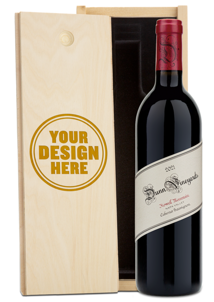 Give a gift of true Napa Valley distinction with the Dunn Vineyards Custom Engraved Wood Box Gift Set, featuring your choice of Dunn Cabernet Sauvignon elegantly presented in a handcrafted single bottle wood box. Each box is carefully engraved with your personalized design. Choose from one of our signature templates or upload your own artwork to create a meaningful, one of a kind keepsake.